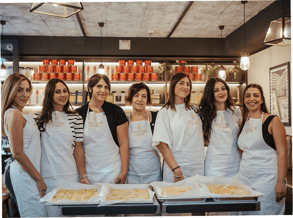 La cooking class a Roma di Antica Osteria non è una semplice lezione di cucina: è un tuffo nel gusto, nei gesti e nelle parole della tradizione. Tra le mura del nostro locale, Maria e Alessandra ti guidano in un pomeriggio dove le mani si infarinano e i sorrisi nascono spontanei.