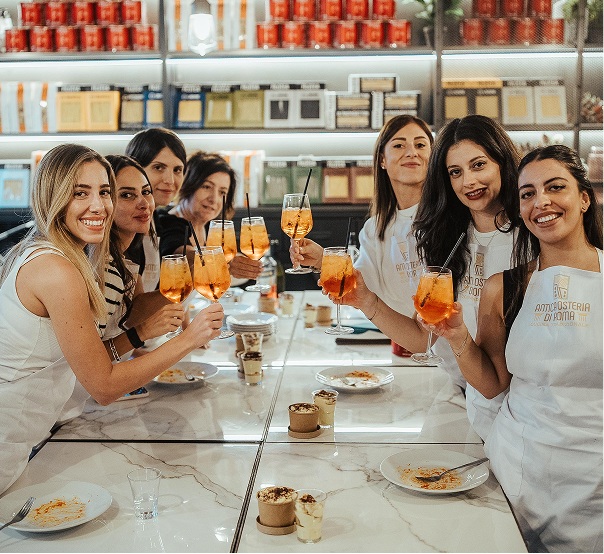 E mentre l’impasto prende forma, lo spritz si alza per brindare: perché imparare, a Roma, è un’arte ma anche una festa.